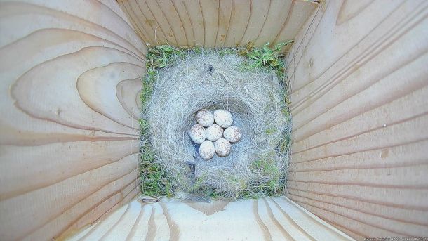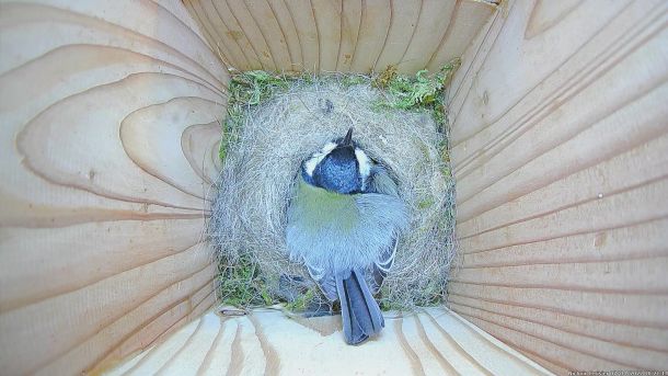 Couvaison des oeufs de Zoé la Mésange charbonnière dans le Nichoir du Cerisier