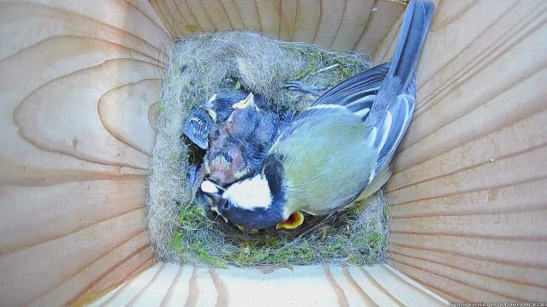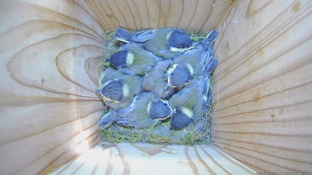 Oisillons de Zoé la Mésange Charbonnière dans le nichoir du Cerisier (Quinzième jour)