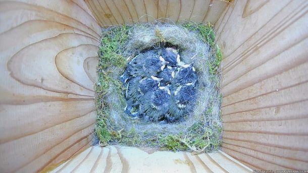 Oisillons de Zoé la Mésange Charbonnière dans le nichoir du Cerisier (Quatrième jour)