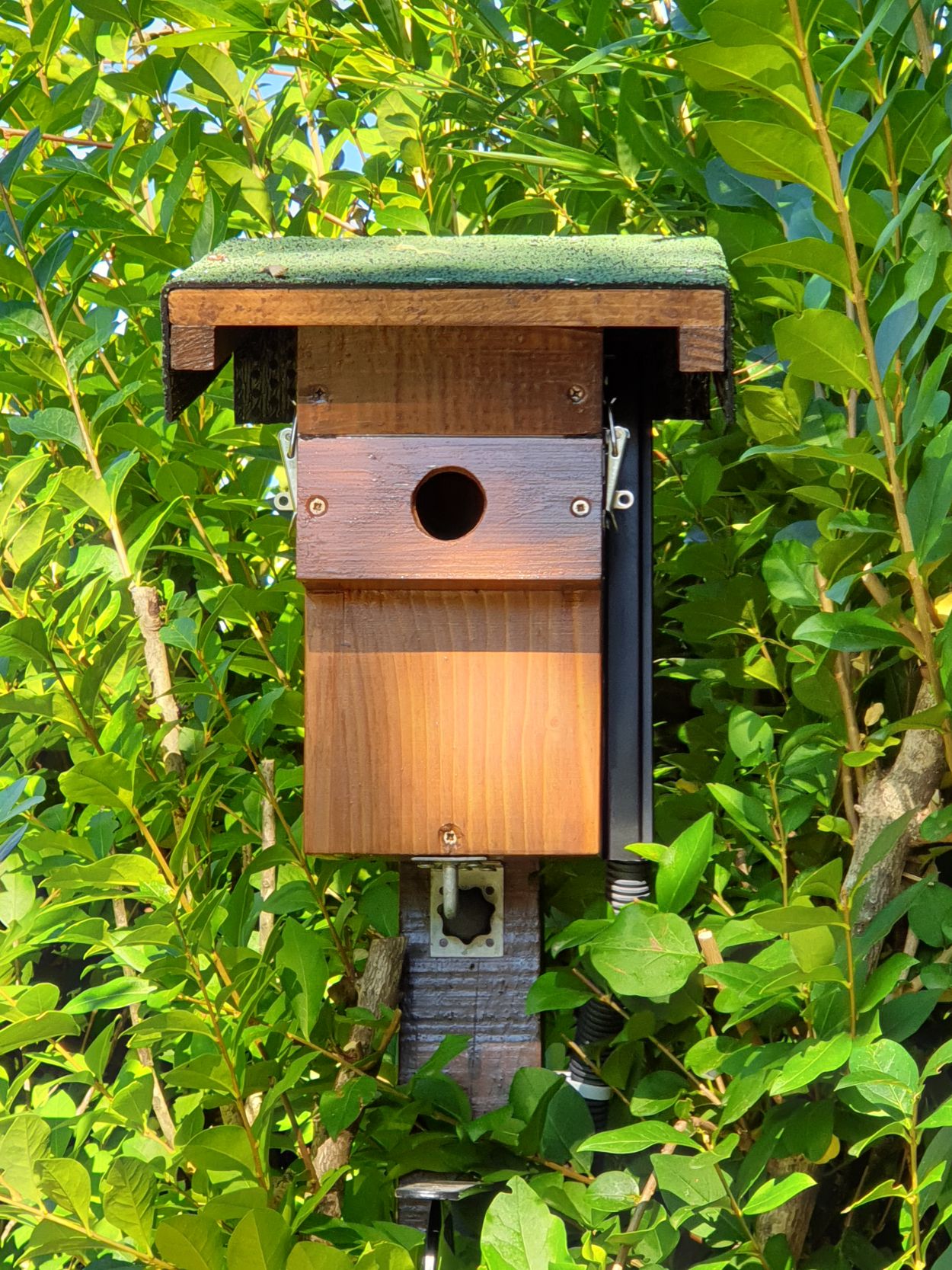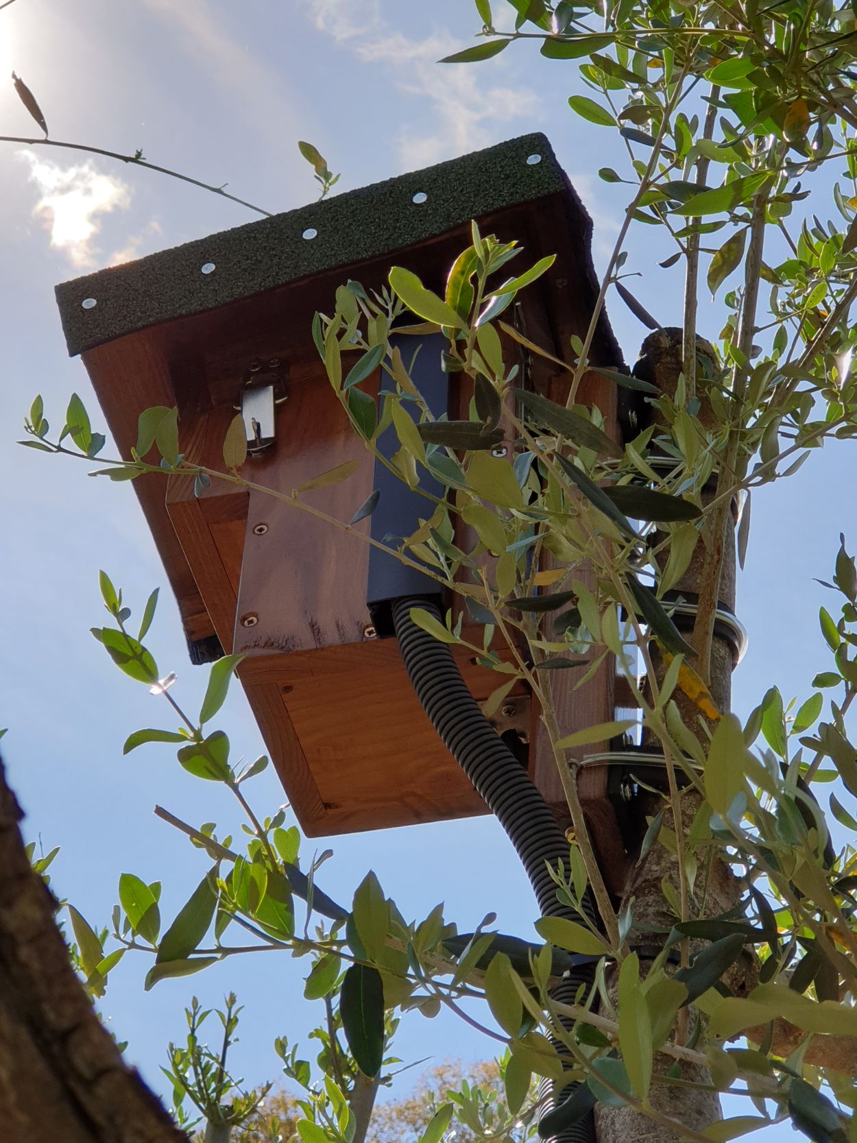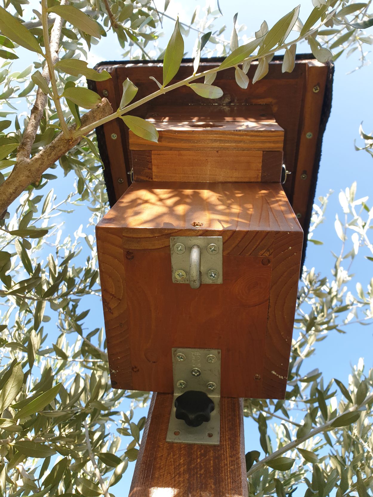 Cela évite ainsi un balancement trop important du nichoir sur les branches fines, voir le risque de casse des branches.